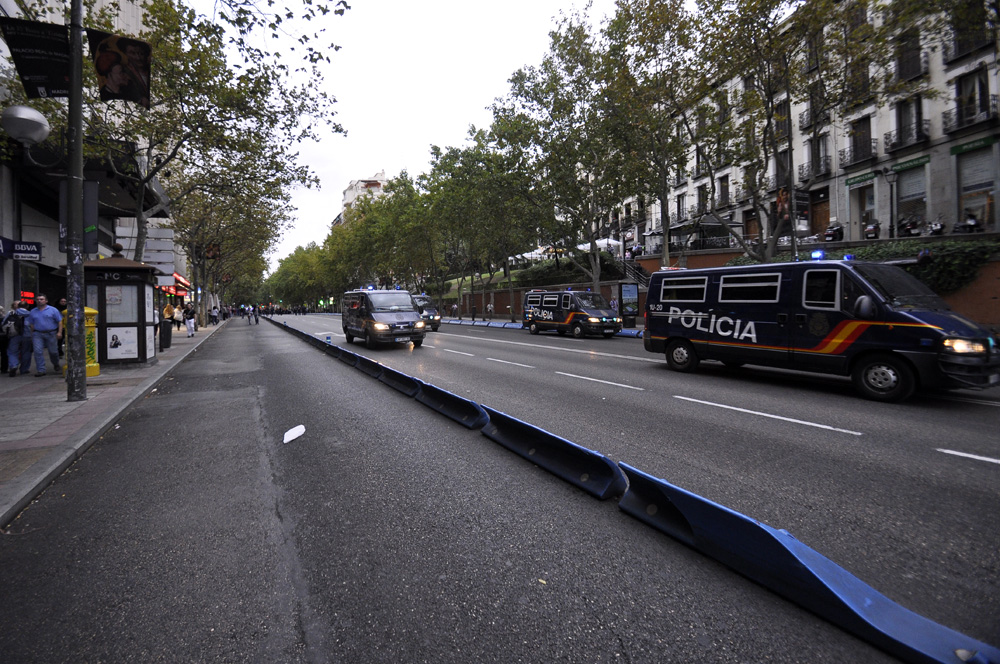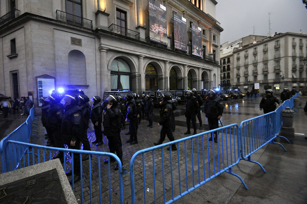 Un fuerte dispositivo policial impedía el paso a los manifestantes desde la plaza de Ópera y rodeaba el Palacio Real.