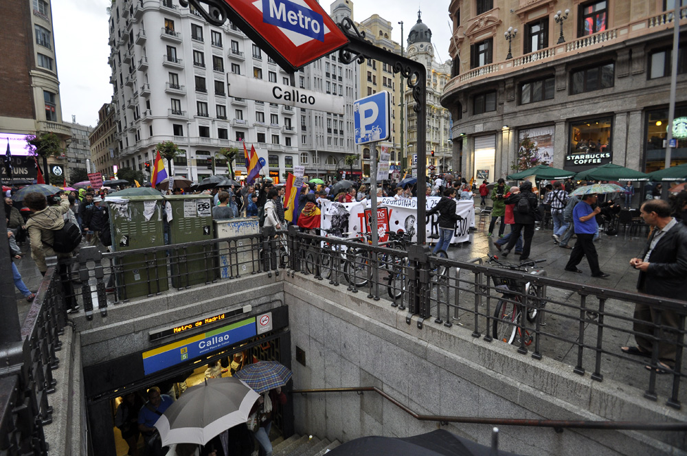 Ya en la plaza de Callao, los manifestantes y los ciudadanos se mezclaban en una de las zonas más concurridas de Madrid.