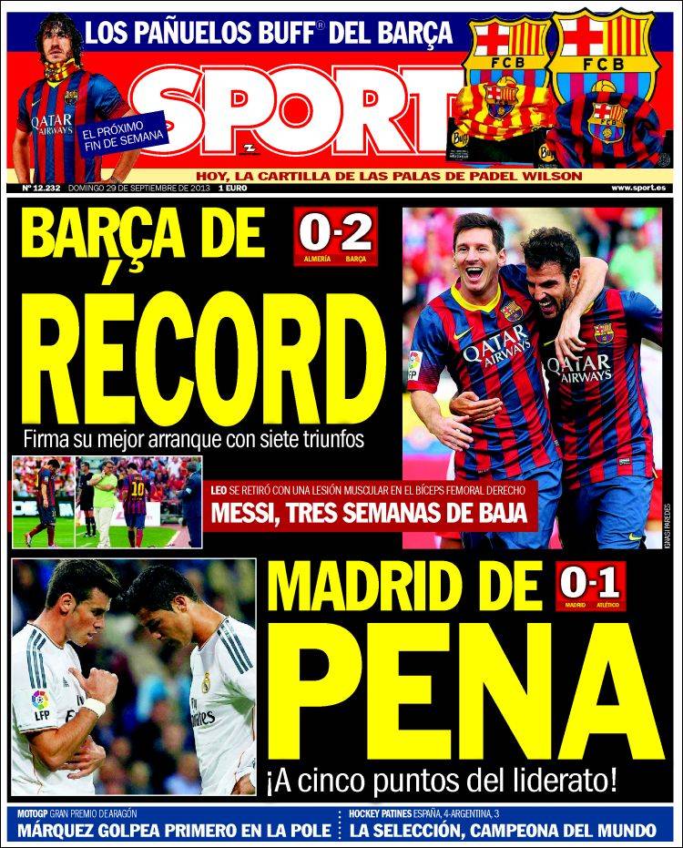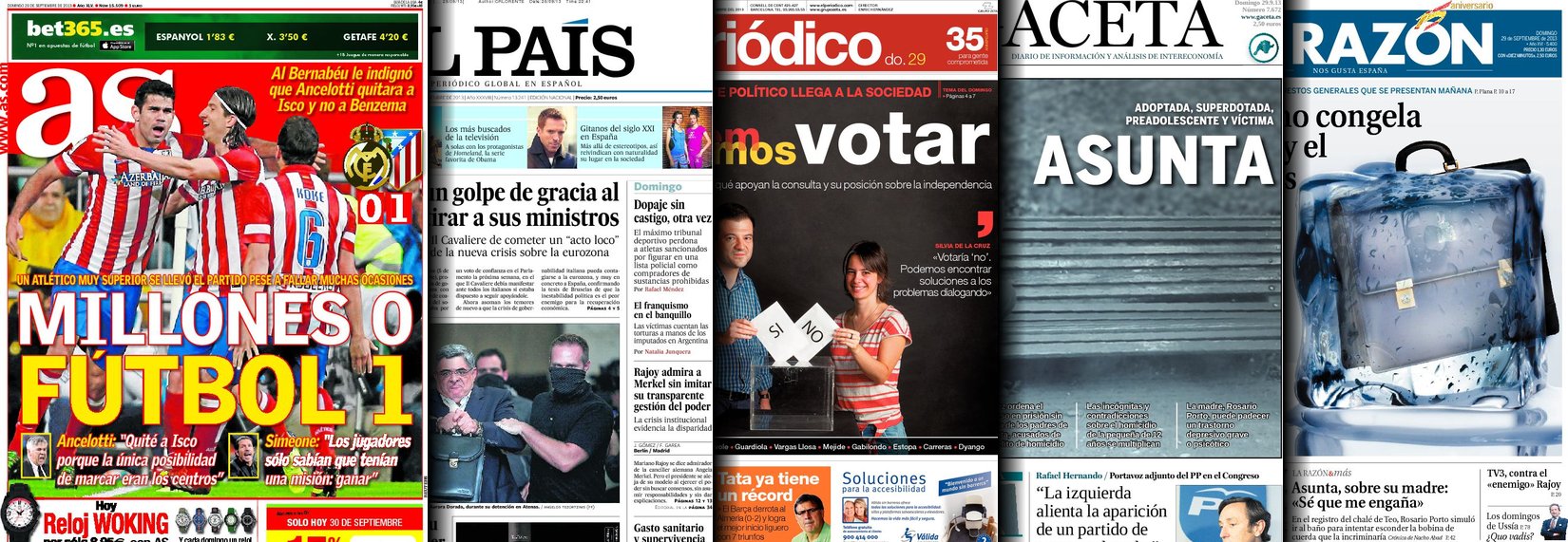 Portadas de los diarios El País, La Gaceta, La Razón, As, El Periódico y La Vanguardia.