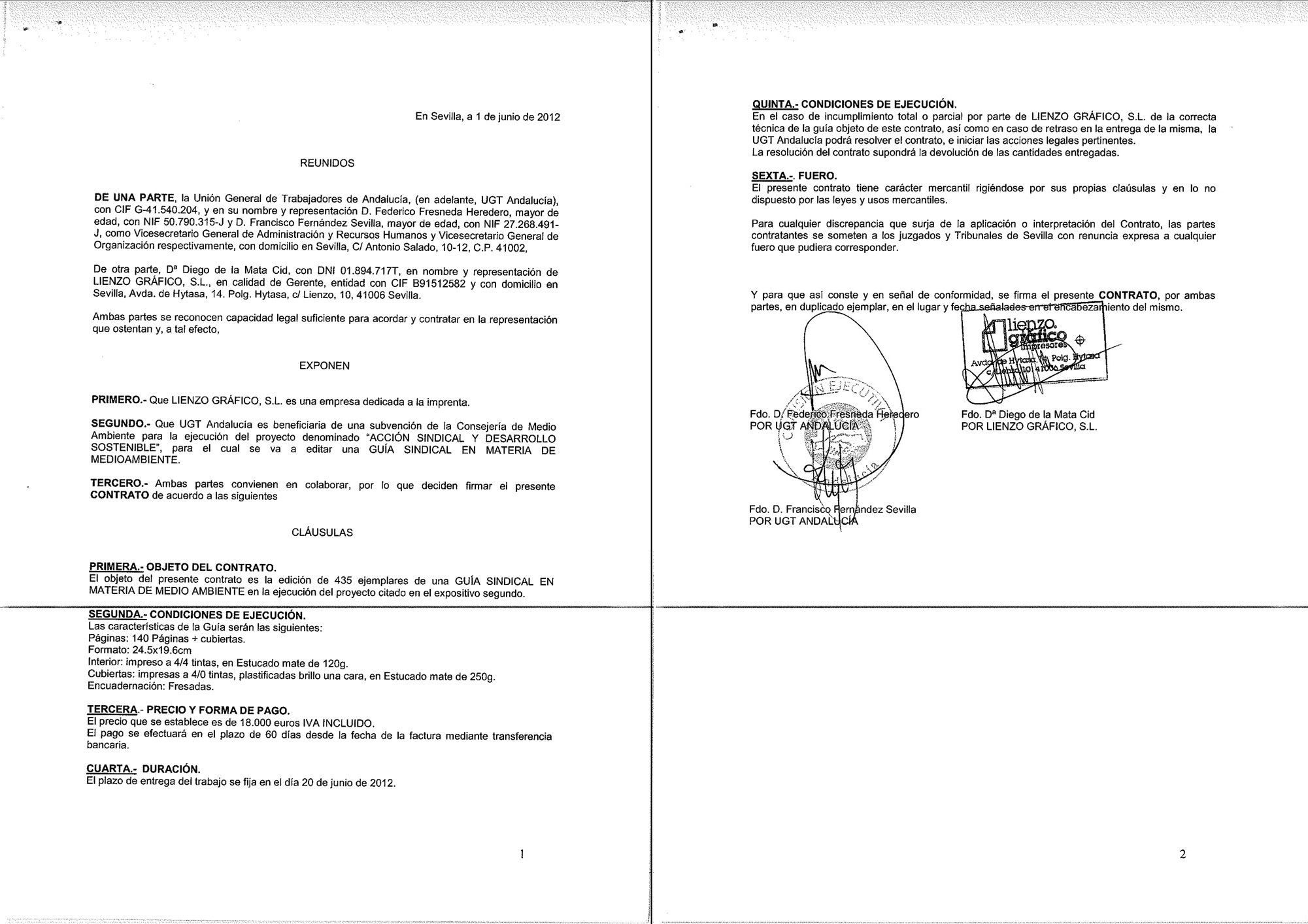 Libertad Digital contó en julio cómo se infló una factura 29 veces para obtener un beneficio de casi 18.000 euros. Se trataba de editar unas guías medioambientales a las que pudieran ser de aplicación las subvenciones de la Consejería de Medio Ambiente de la Junta de Andalucía. El contrato, firmado el 1 de junio de 2012 por los mismos altos cargos de la UGT que en el caso detallado en primer lugar, esto es, el actual secretario general de la UGT, Francisco Fernández Sevilla, y el secretario de Administración y Recursos Humanos, Federico Fresneda, fue el siguiente: