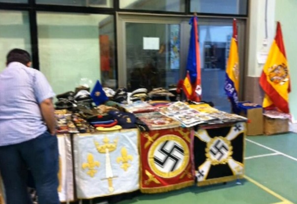 El colegio público Príncipes de Asturias, del municipio madrileño de Quijorna, albergó el sábado un mercadillo en el que se pudieron ver pósteres de Francisco Franco, retratos de José Antonio Primo de Rivera, estandartes con la esvástica nazi o parches con el emblema de las SS Totenkopf. Según informa El País, una docena de puestos estaban presididos por la siguiente pancarta: "¡Saludo a Franco! ¡Arriba España!".