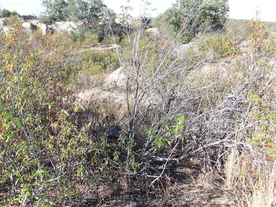 Artefacto explosivo improvisado (IED) colocando en un matorral junto a una pisca a semejanza de las que los talibanes colocan desde hace una década a las tropas españolas.