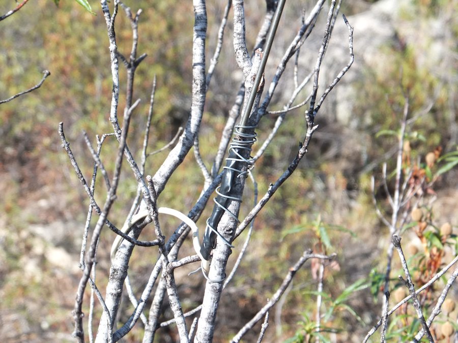 Detalle de la antena iniciadora y el cable que la une con la carga explosiva.