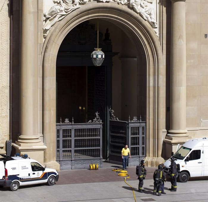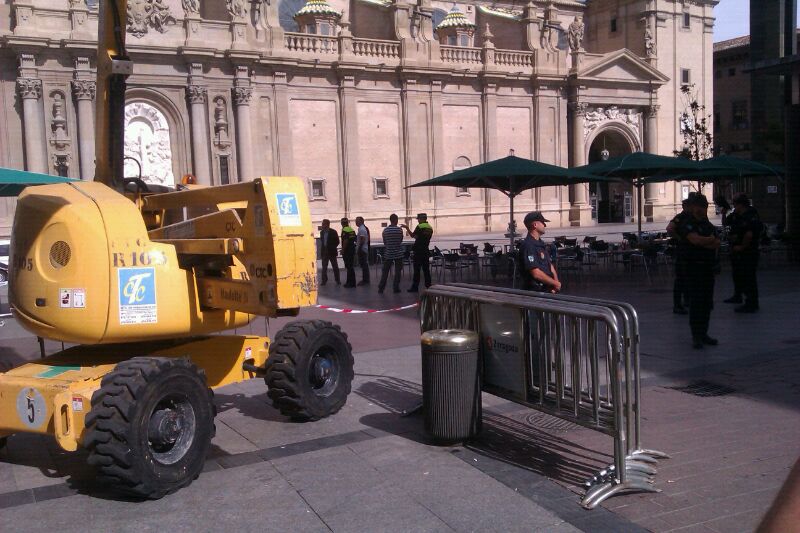 En cuanto se produjo el atentado la Policía acordonó rápidamente el Pilar y ahora los Tedax están analizando todo el lugar