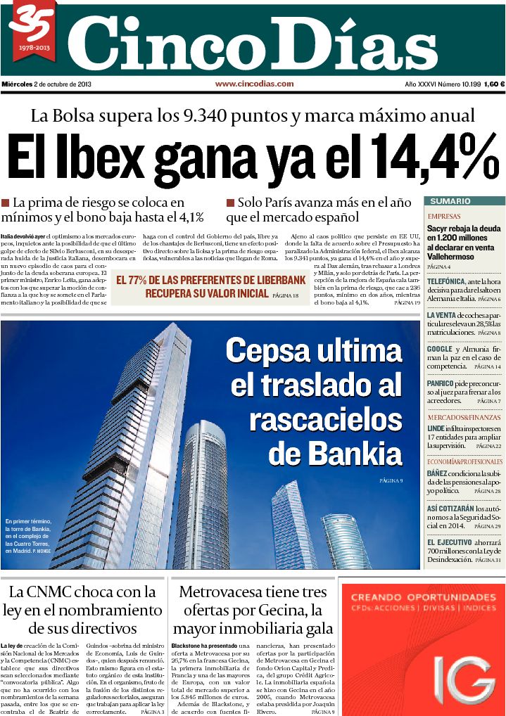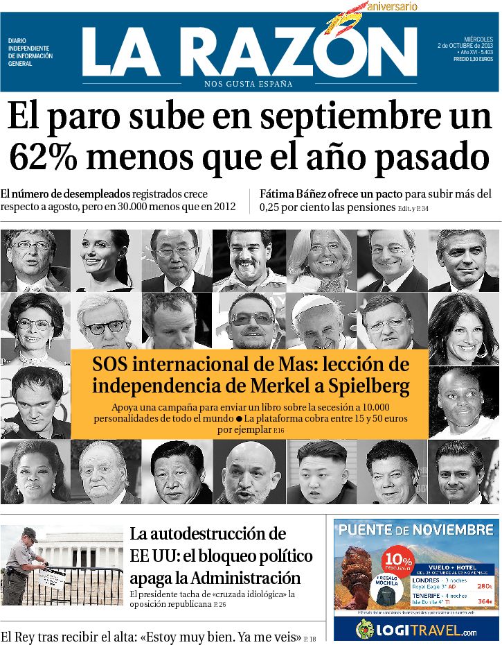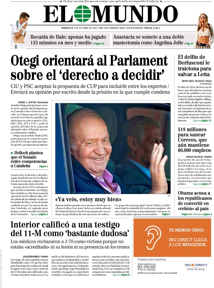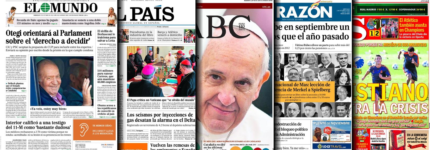 Portadas de los diarios El Mundo, El País, ABC, La Razón, La Vanguardia, La Gaceta, El Periódico, Cinco Días, El Economista, Expansión, Marca, As, Mundo Deportivo y Sport.