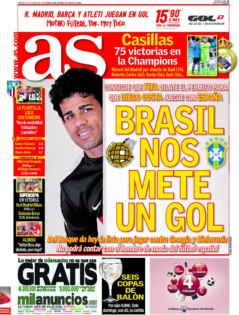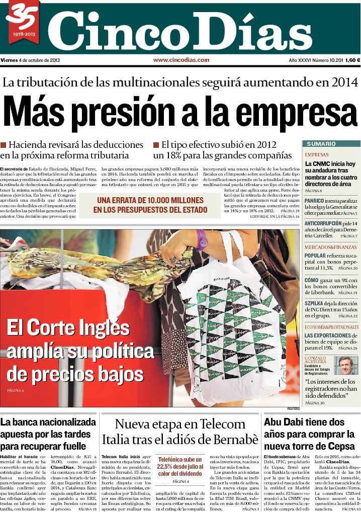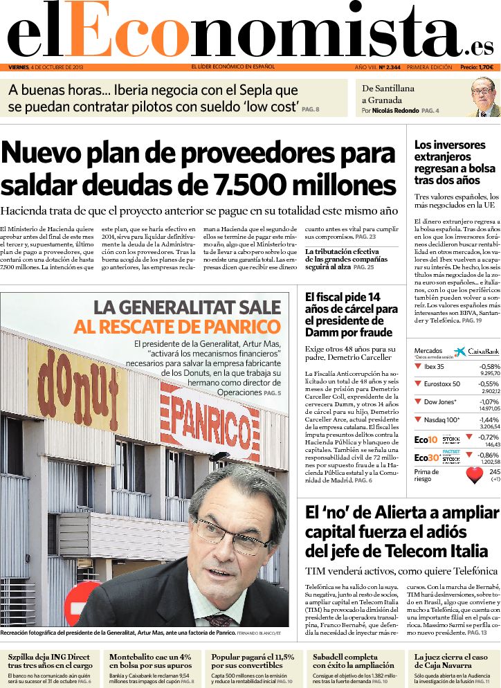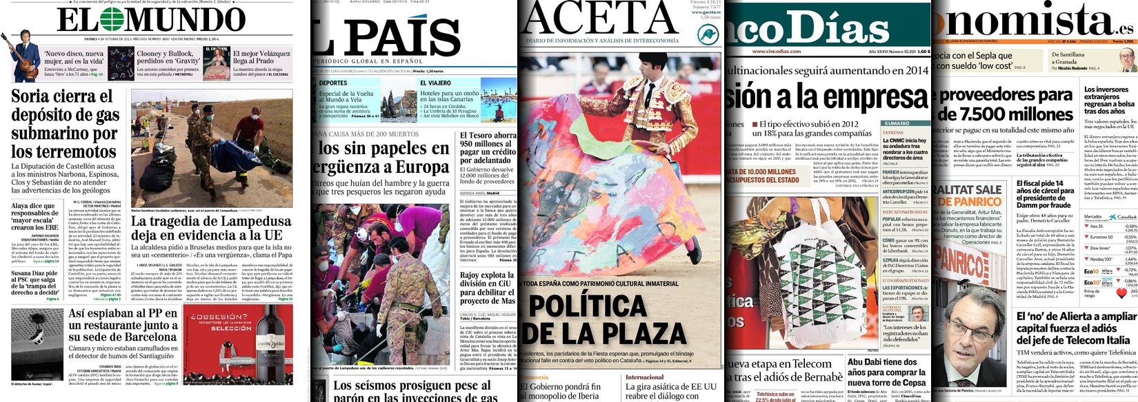 Portadas de los diarios El Mundo, El País, ABC, La Razón, La Vanguardia, La Gaceta, El Periódico, Cinco Días, El Economista, Expansión, Marca, As, Mundo Deportivo y Sport.