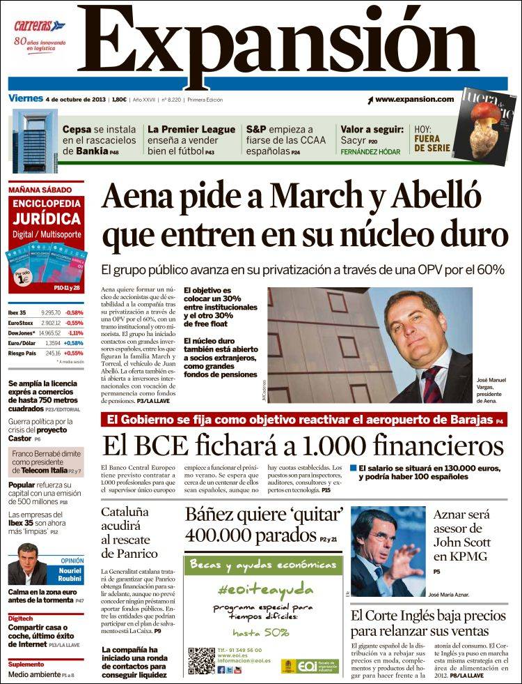 "Aena pide a March y Abelló que entren en su núcleo duro"