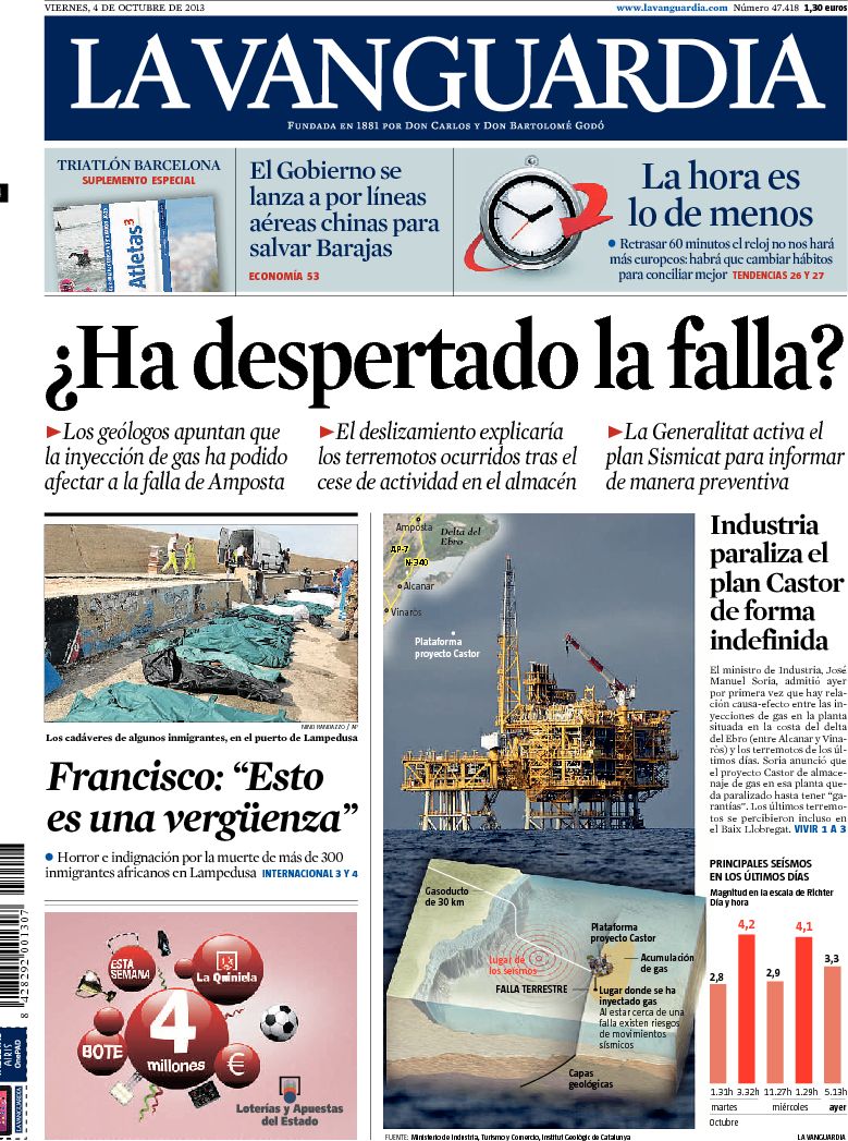 "Soria cierra el depósito de gas submarino por los terremotos"