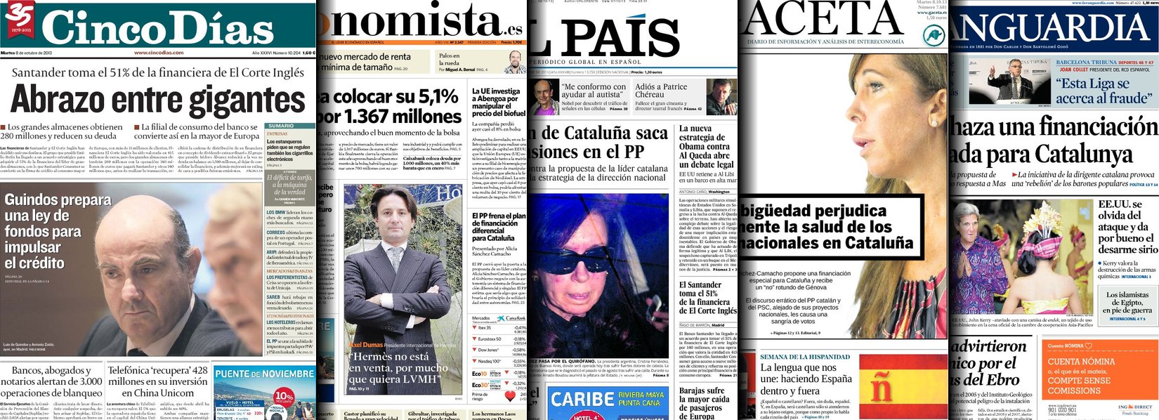 Portadas de los diarios El Mundo, El País, ABC, La Razón, La Vanguardia, La Gaceta, El Periódico, Cinco Días, El Economista, Expansión, Marca, As, Mundo Deportivo y Sport.