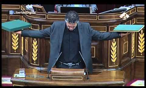 El portavoz de Amaiur en el Congreso, Xabier Mikel Errekondo, ha escenificado su rechazo a la reforma educativa aplicándose un "autocastigo" durante su intervención en la tribuna, colocándose con los brazos en cruz y un libro en cada mano.