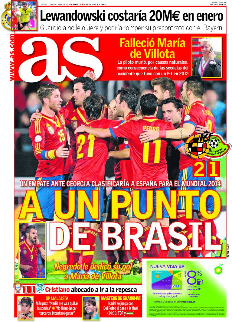 Portadas de los diarios El Mundo, El País, ABC, La Razón, La Gaceta, La Vanguardia, El Periódico, Expansión, el Economista, Cinco Días, Marca, As, Mundo Deportivo y Sport