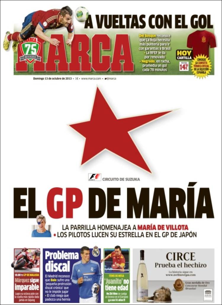 Portadas de los diarios El Mundo, El País, ABC, La Razón, La Gaceta, La Vanguardia, El Periódico, Marca, As, Mundo Deportivo y Sport.