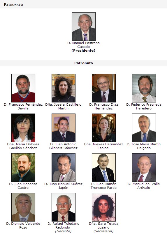 Un patronato plagado de nombres ligados tanto a la cúpula de UGT como a conocidos dirigentes socialistas. Por ejemplo, cuando se constituyó su Patronato se encontraba formado por Manuel Pastrana Casado, entonces secretario general de UGT-A como Presidente, y como patronos los siguientes: Araceli Cabañas Aguilar; Federico Fresneda Heredero -implicado en el falseamiento de facturas de UGT-A-; Germán Damián Domínguez Soto; Rafael Toledano Redondo; Manuel del Valle Arévalo, ex alcalde de Sevilla; José María Rodríguez de la Borbolla y Camoyán, ex presidente de la Junra de Andalucía; José María Martín Delgado; Antonio María Claret García García, ex presidente de Caja General de Granada; Dionisio Valverde Pozo y María Piedad Pérez Arco. Pero las cosas cambiaron.