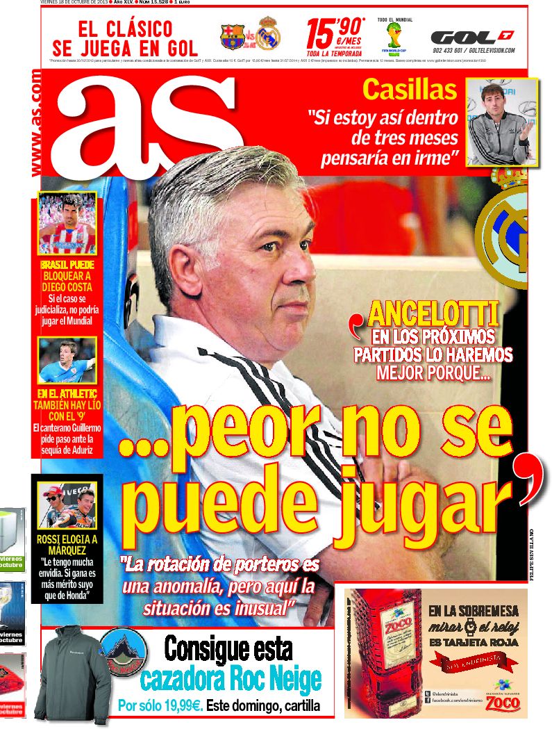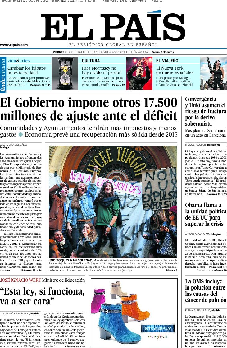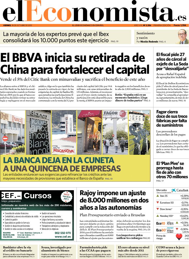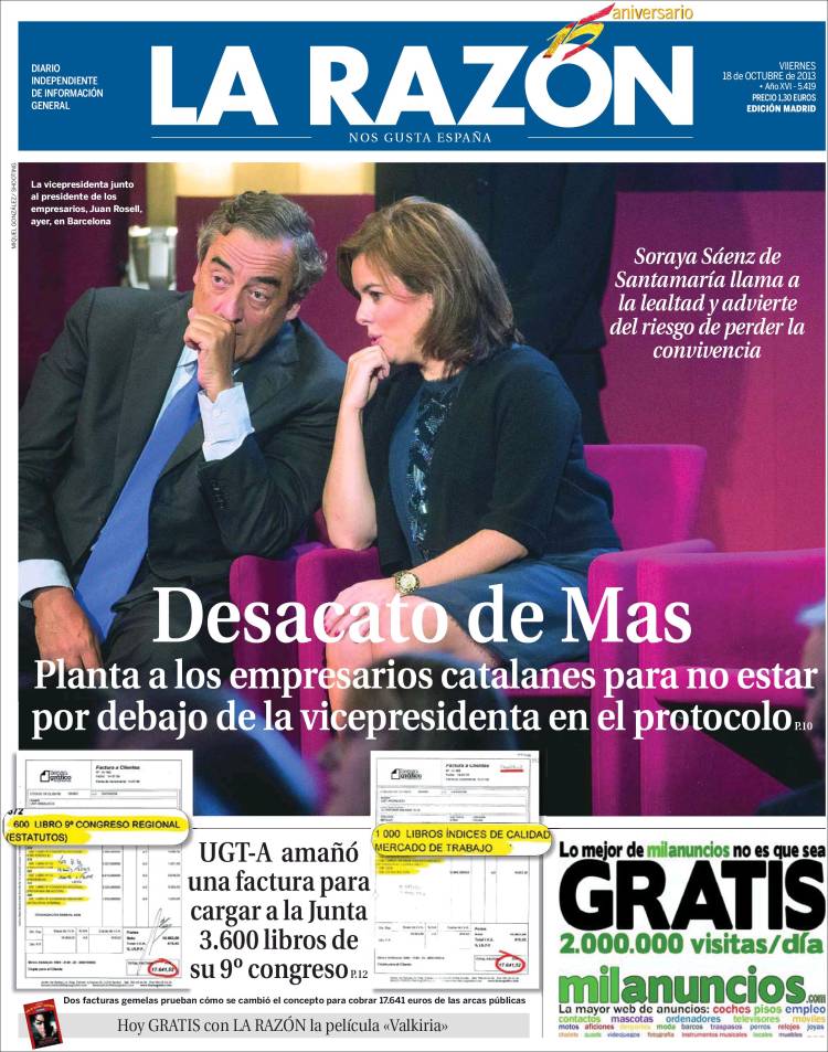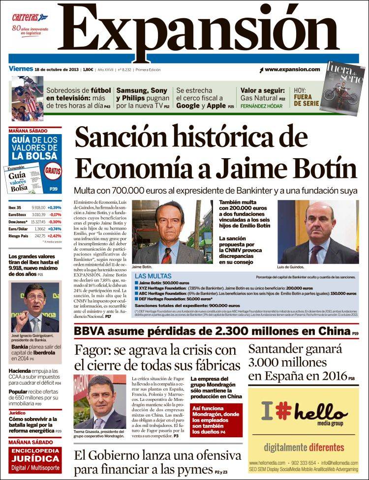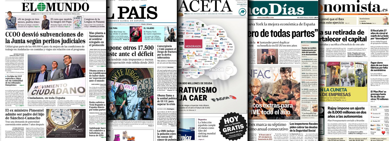 Portadas de los diarios El Mundo, El País, ABC, La Razón, La Vanguardia, La Gaceta, El Periódico, Cinco Días, El Economista, Expansión, Marca, As, Mundo Deportivo y Sport.
