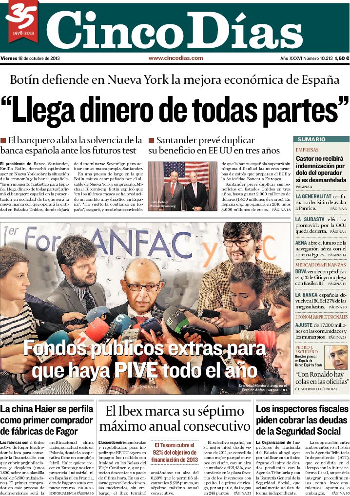 "El dinero llega a España de todas partes, es un momento fantástico"