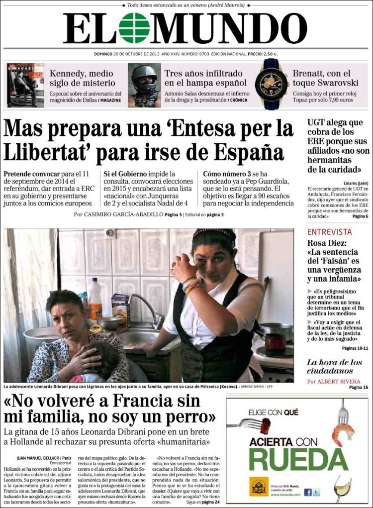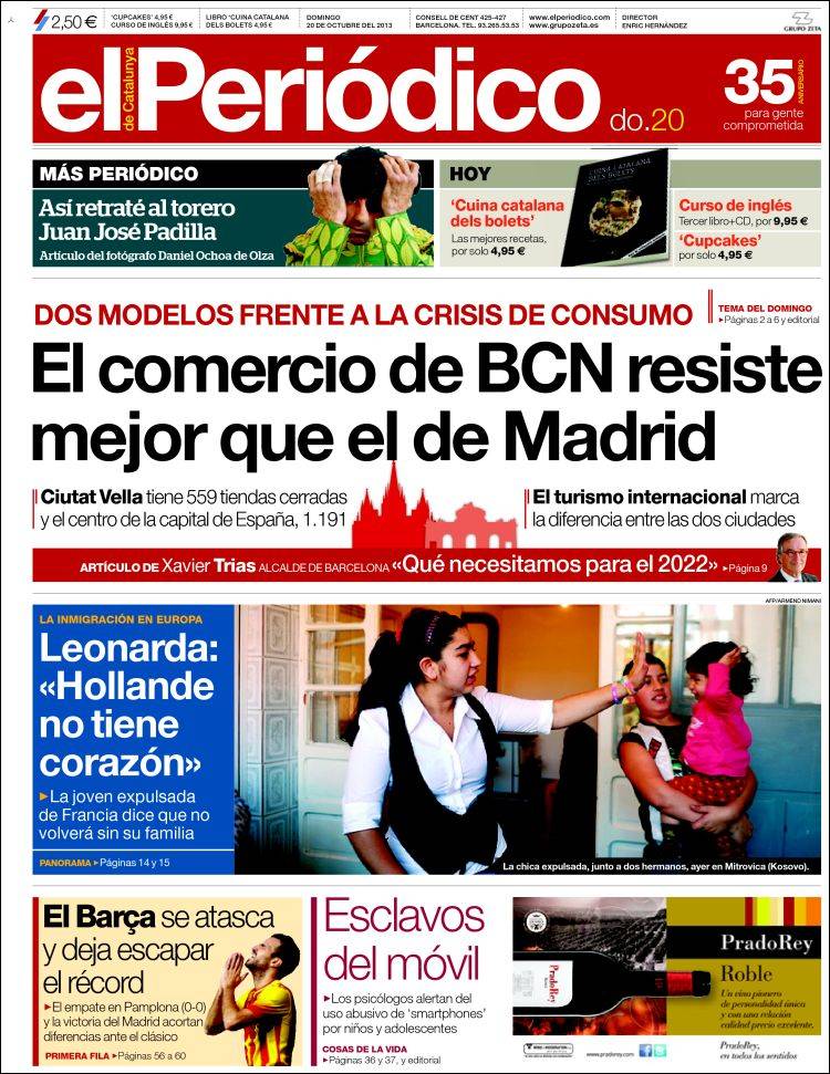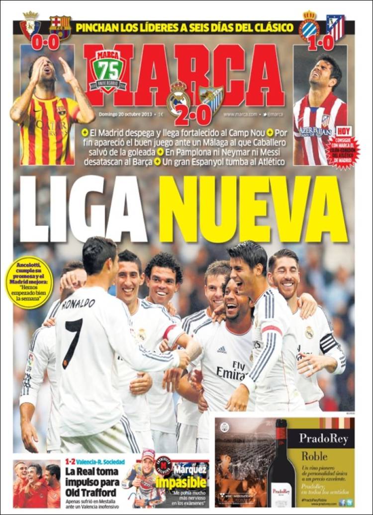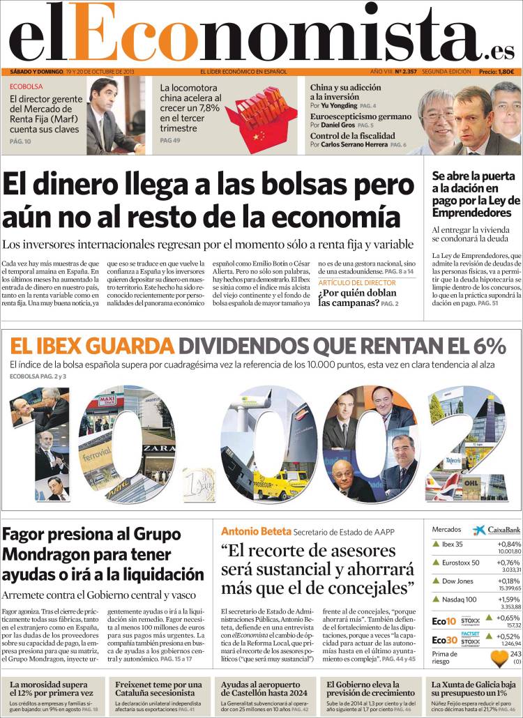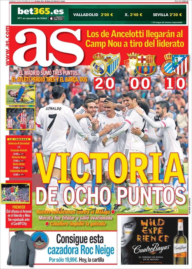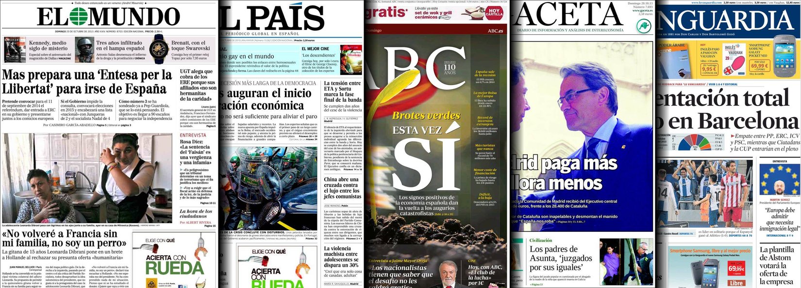 Portadas de los diarios El País, La Gaceta, ABC, As, Cinco Días, El Periódico, El Economista y La Vanguardia.