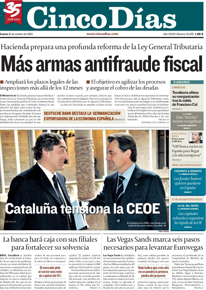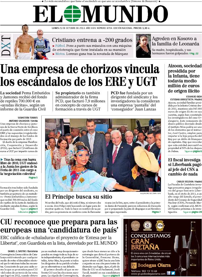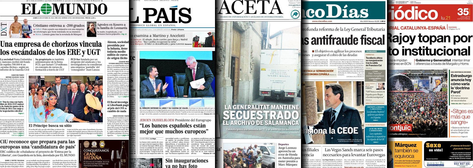 Portadas de los diarios El Mundo, El País, ABC, La Razón, La Vanguardia, La Gaceta, El Periódico, Cinco Días, El Economista, Expansión, Marca, As, Mundo Deportivo y Sport.