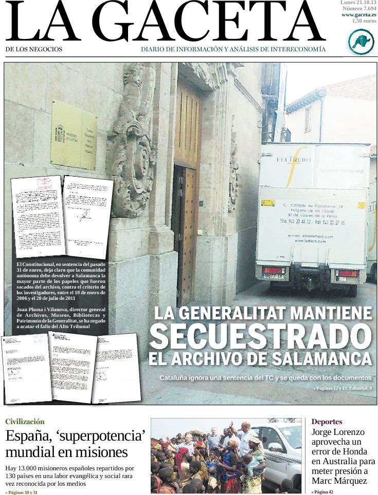 "La Generalitat mantiene secuestrado el archivo de Salamanca"
