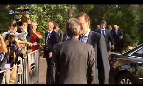 No hubo más que un saludo ante las cámaras y una breve conversación sobre la cumbre europea que arranca este jueves en Bruselas. En un momento, Artur Mas coge a Mariano Rajoy y le dice algo que no captan los periodistas, pero fue breve y, en todo caso, rodeado del resto de invitados a la cumbre 5+5.