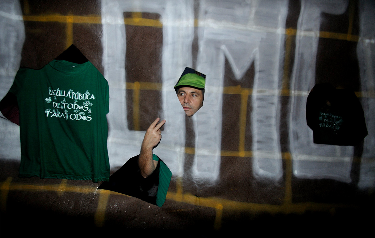"Escuela pública de todos y para todos" se lee en la camiseta que permanecía colgada en una enorme pancarta durante la manifestación.