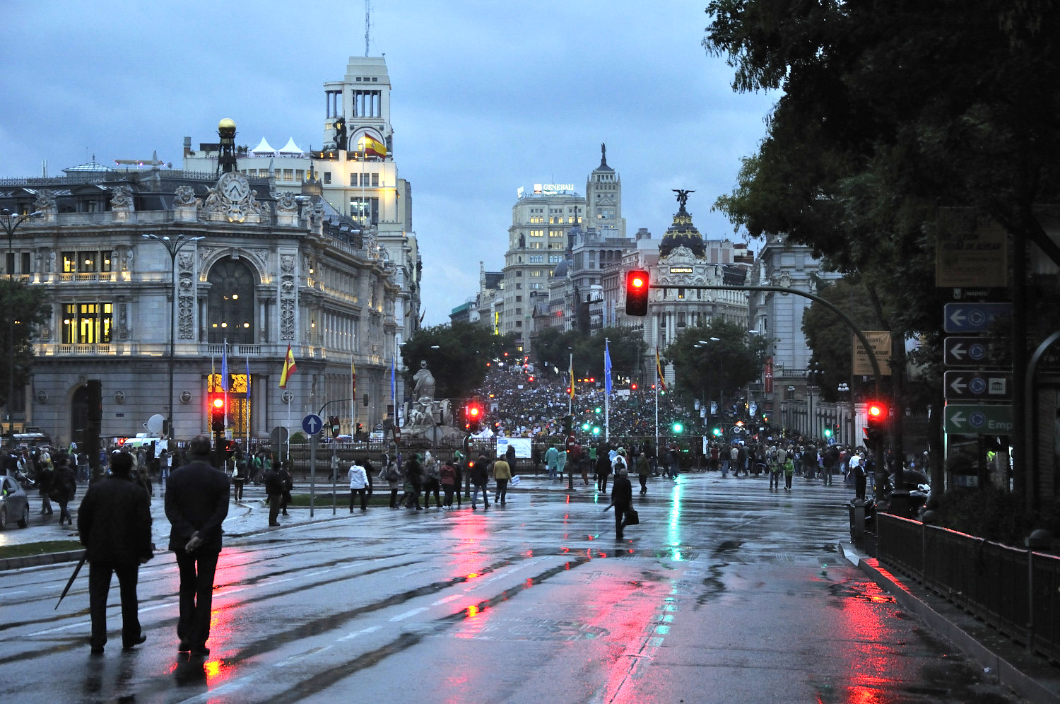 El Banco de España era testigo del paso de miles de manifestantes hacia el centro de la capital.