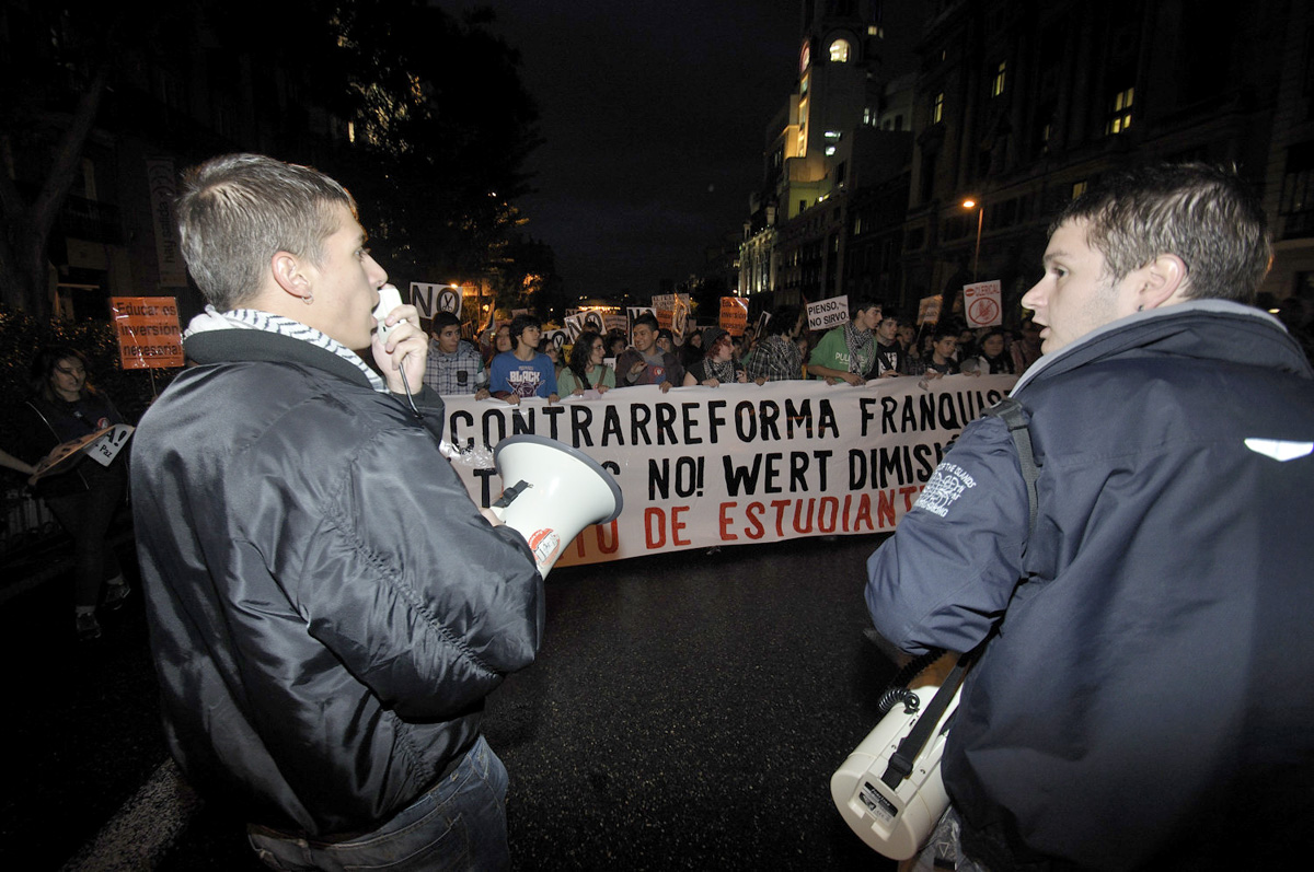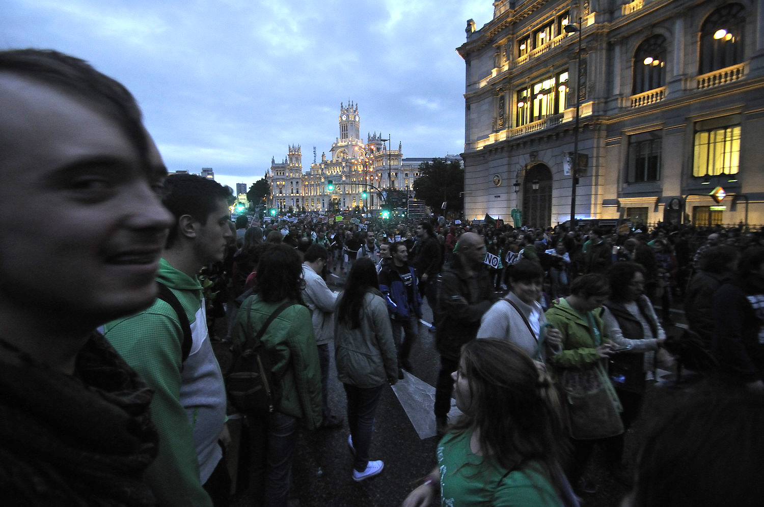 La marcha de estudiantes y profesores comenzaba la subida hacia la Puerta del Sol de Madrid desde la plaza de Cibeles.