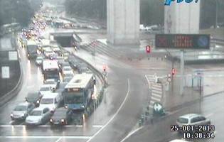 La lluvia que cae desde primera hora de este viernes sobre Madrid ha aumentado hasta 144 kilómetros los atascos habituales en las vías de acceso a la ciudad, con cuatro de las entradas a la ciudad en nivel rojo -circulación difícil-, según informa la Dirección General de Tráfico.