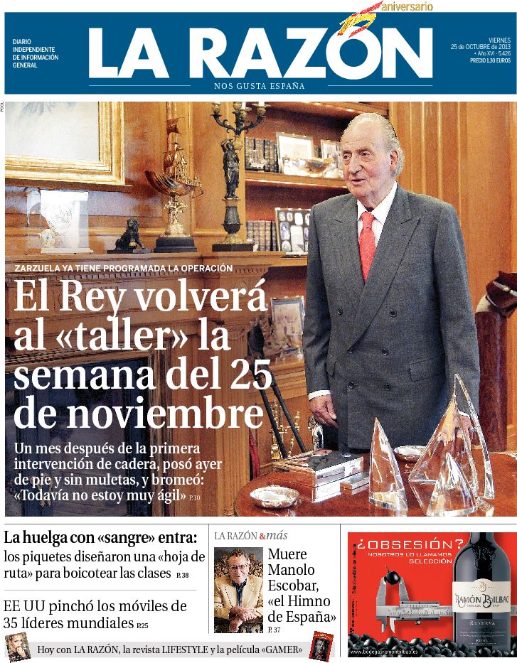 "El Rey volverá al 'taller' la semana del 25 de noviembre"