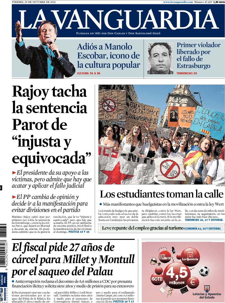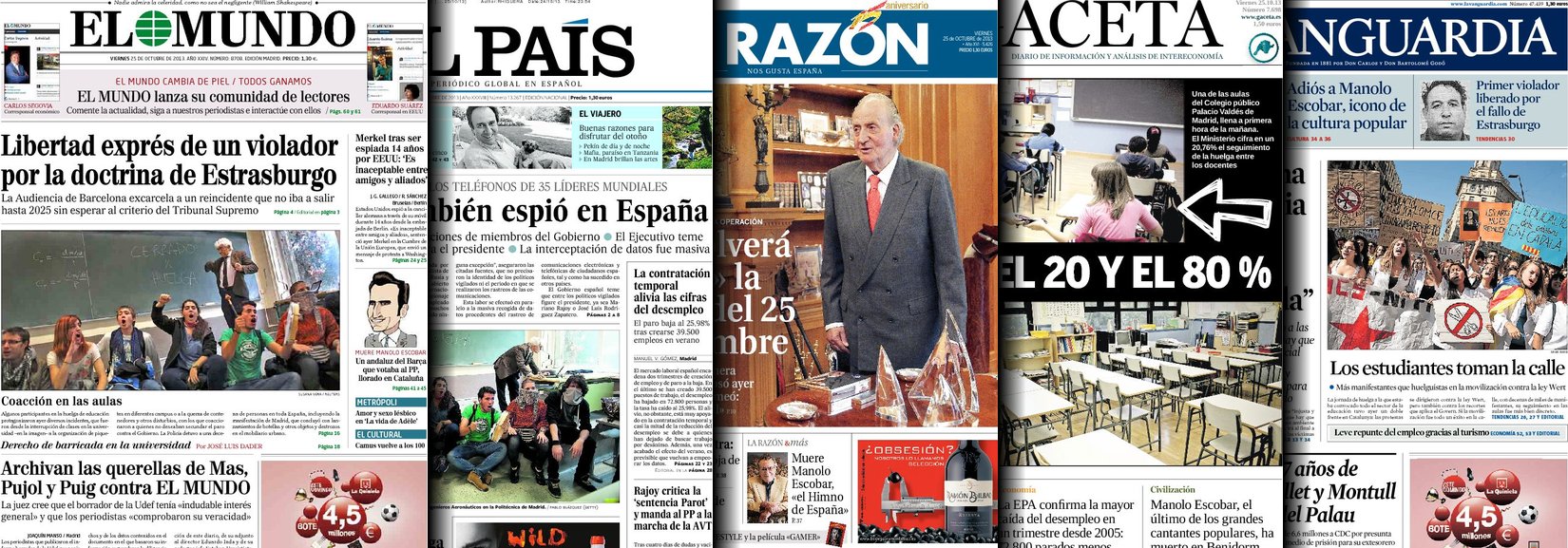 Portadas de los diarios El Mundo, El País, ABC, La Razón, La Vanguardia, La Gaceta, El Periódico, Cinco Días, El Economista, Expansión, Marca, As y Sport.