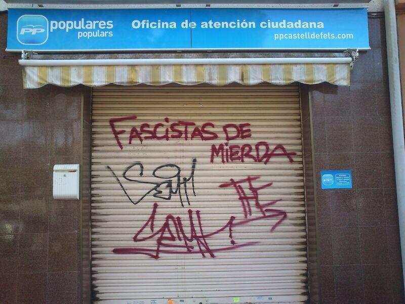 En Castelldefels, el pasado mes de mayo, la sede del PP amanecía con una pintada en la que podía leerse "Fascistas de Mierda"