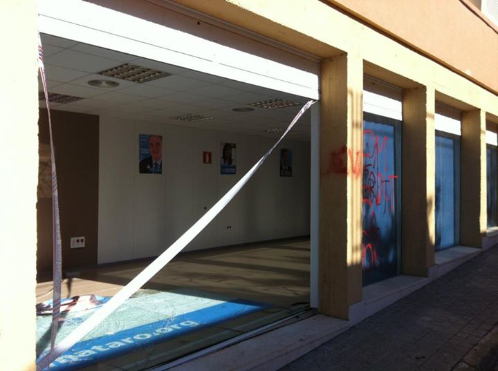 El pasado mes de mayo de 2013 la sede del PP en Mataró aparecía pintada y con las lunas destrozadas