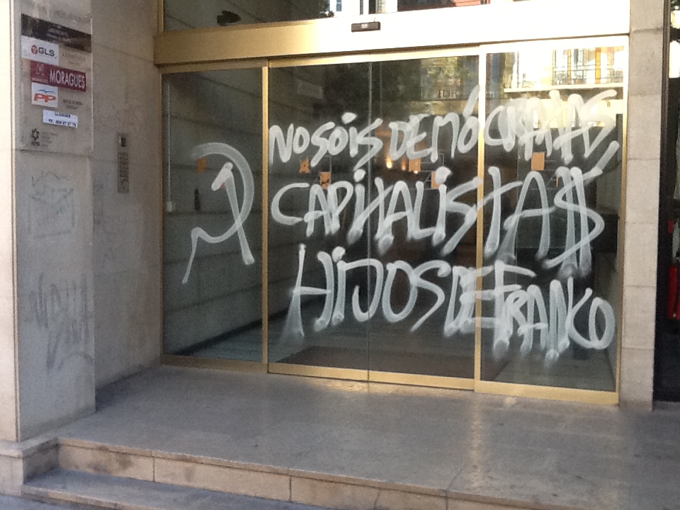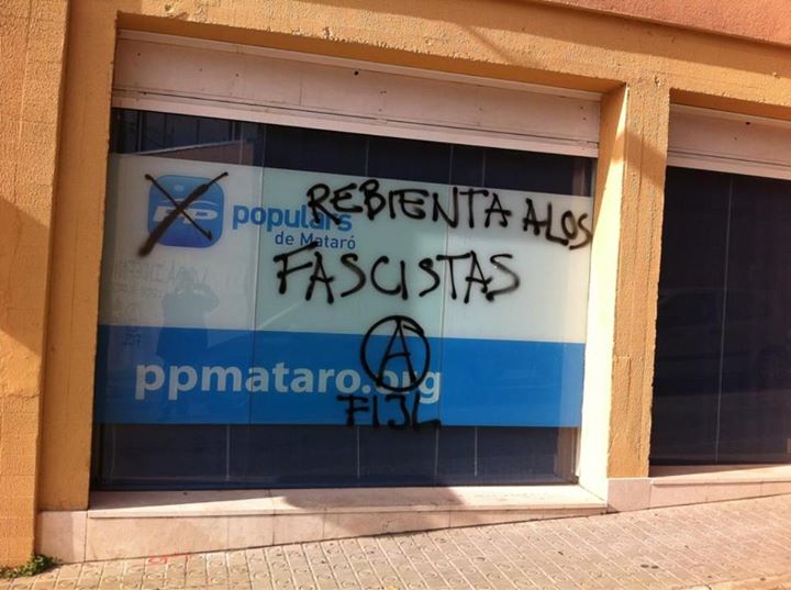 En noviembre de 2012 la sede del PP en Mataró aparecía con estas pintadas.