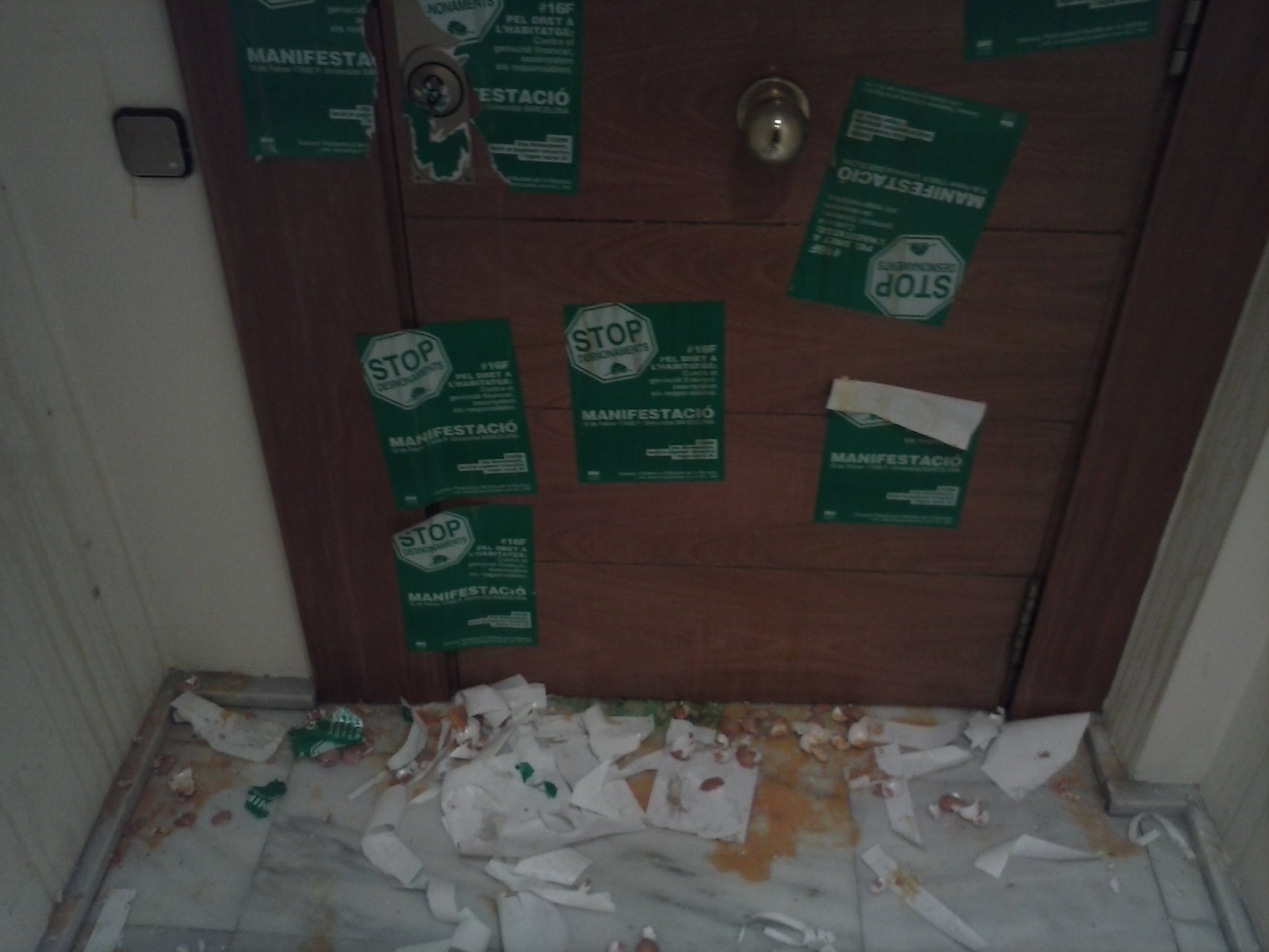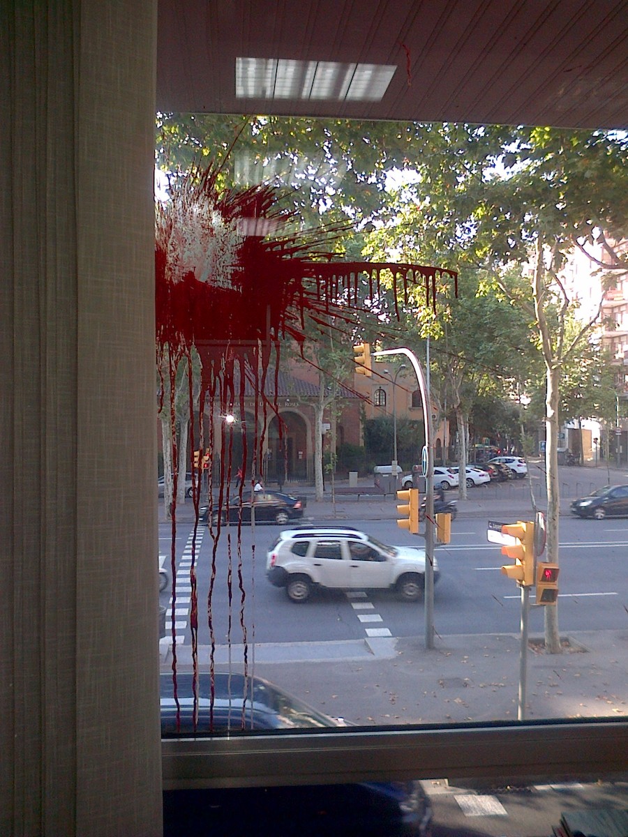 Sede actual de Ciutadans en Barcelona, tras un ataque con botes de pintura