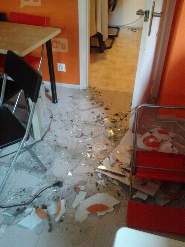 La sede de Ciutadans en Gerona ha sufrido numerosos ataques, este fue perpetrado en diciembre de 2012.
