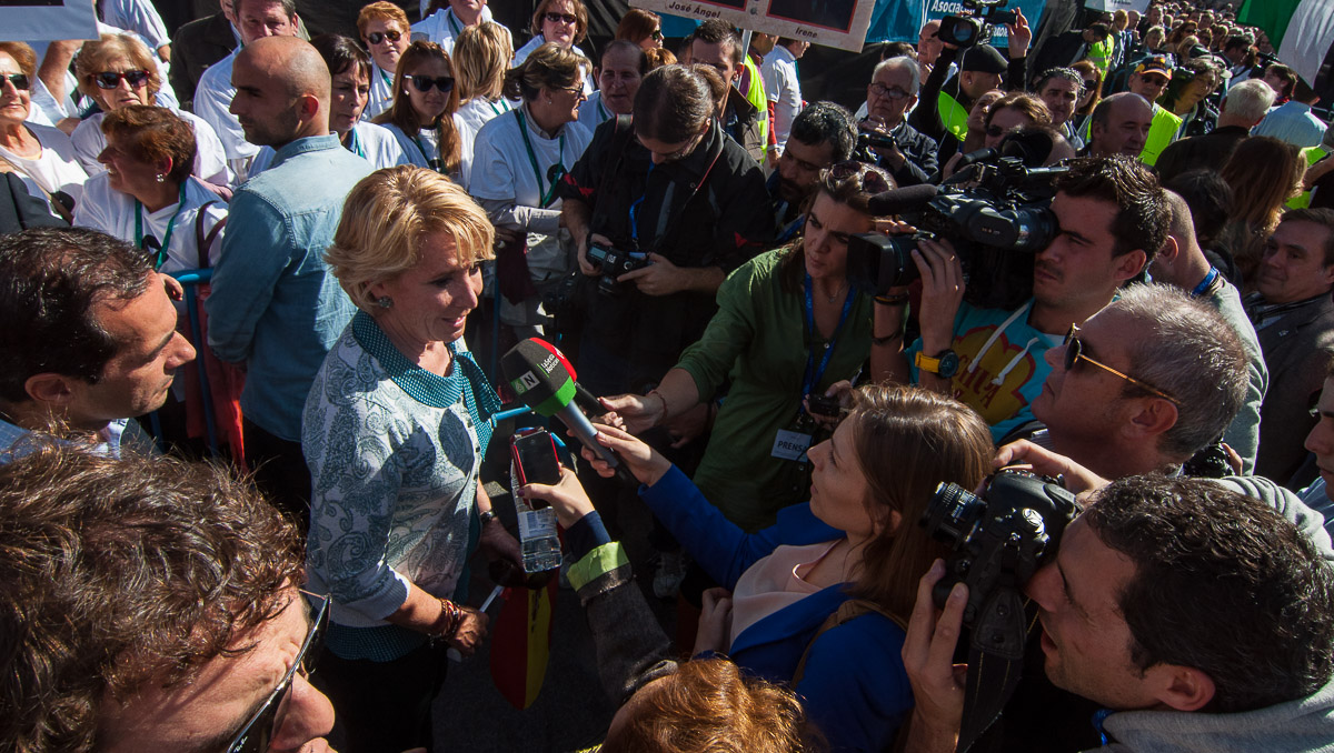 Un aplauso largo y emotivo despedía a los presentes en el escenario al finalizar el acto. Por otro lado, los representantes políticos han sido despedidos de formas muy diferentes. Pitos y abucheos para algunos y ovaciones para otros, entre ellos Esperanza Aguirre, que tras finalizar el acto ha comentado a LD que "a nadie le sorprenda que yo esté aquí. Estoy, he estado y siempre estaré con las víctimas. He estado en todas las manifestaciones y en esta con más razón".