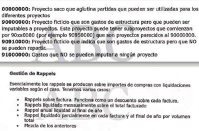 Pero además todo se complementaba con otro fondo creado con los "botes" o saldos que acumulaban a partir de facturas infladas de sus proveedores de referencia. El manual dedica un apartado específico a los "botes" y otro a las compras que no encajan en ninguna ayuda finalista. El sistema informático los encuadra dentro de los programas especiales y pasan a engrosar un cajón de sastre que denomina proyectos saco o ficticios hasta tanto el departamento de Justificaciones decidiera a qué fondo endosaba el gasto.