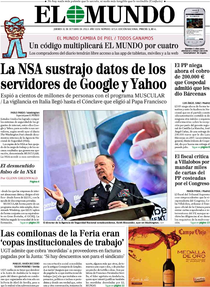 "La NSA sustrajo datos de los servidores de Google y Yahoo"