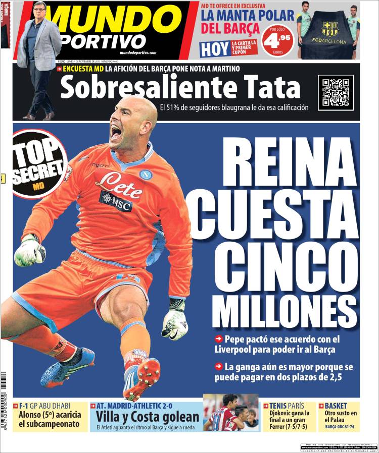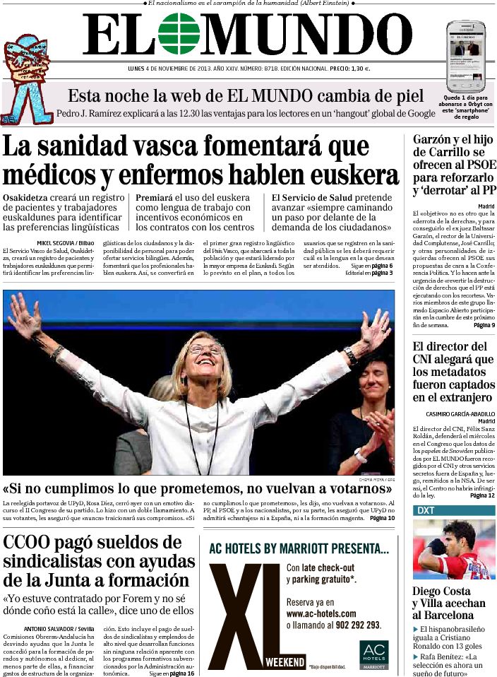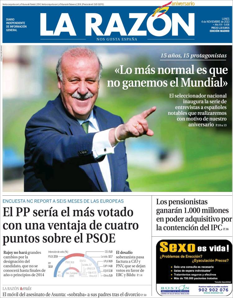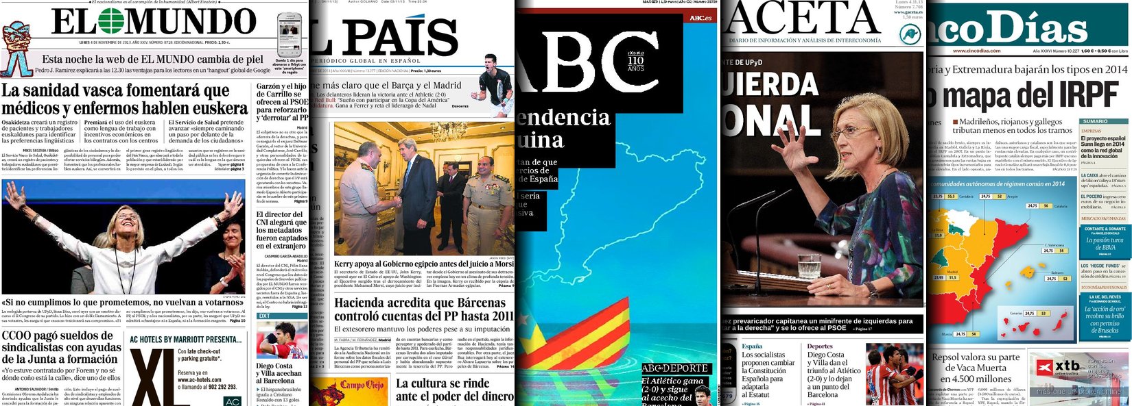Portadas de los diarios El Mundo, El País, ABC, La Razón, La Vanguardia, La Gaceta, El Periódico, Cinco Días, El Economista, Expansión, Marca, As, Mundo Deportivo y Sport.