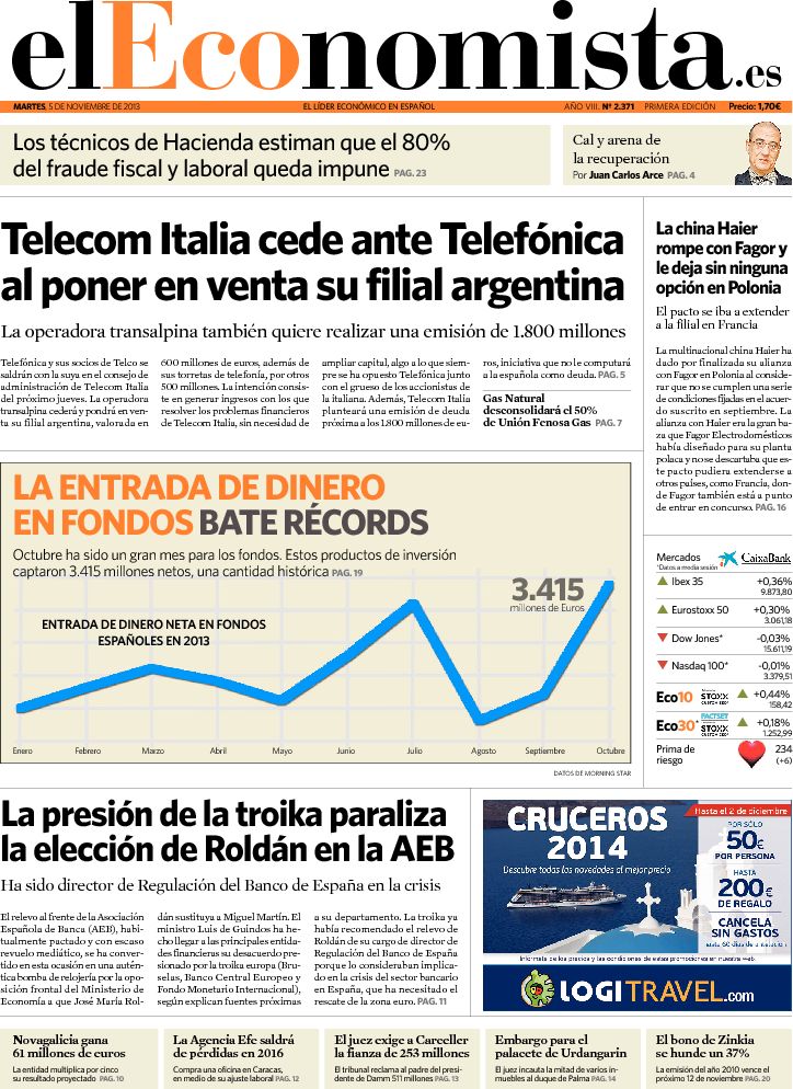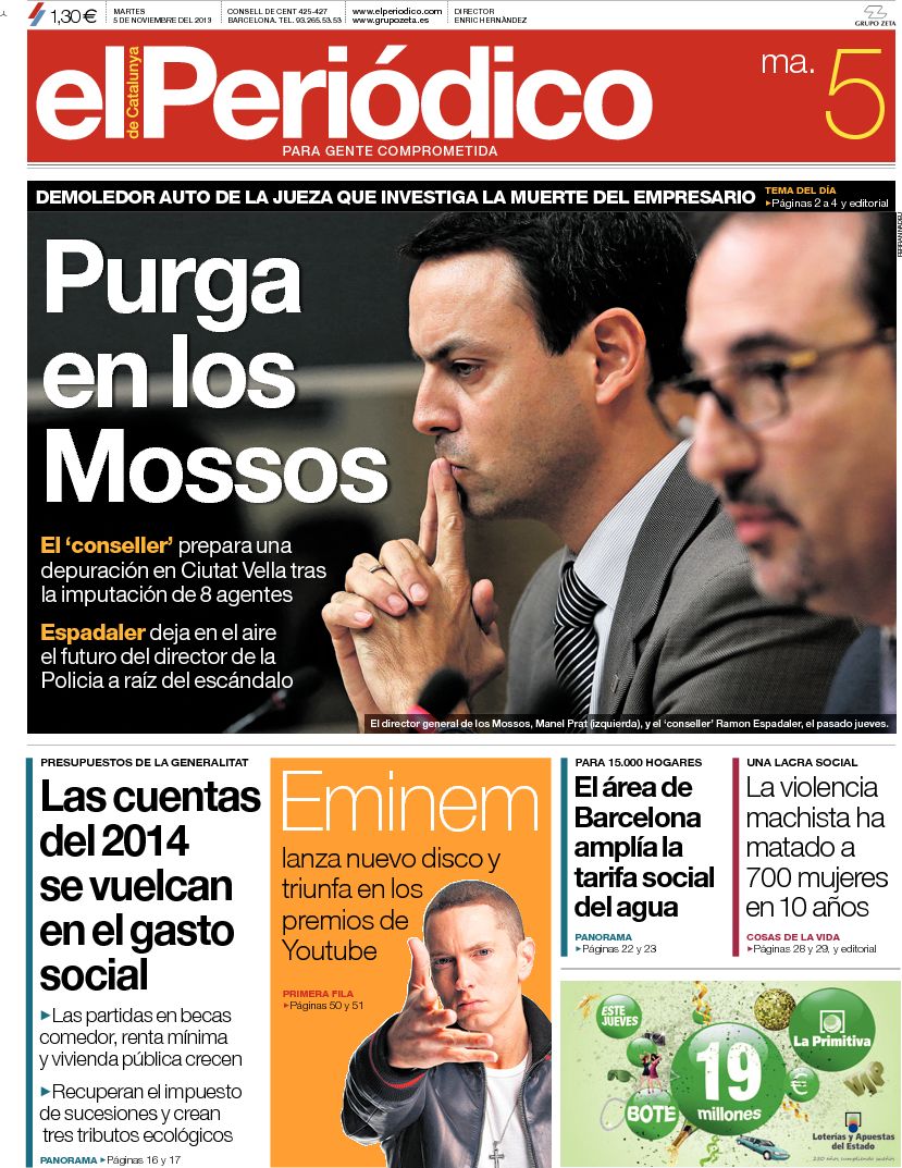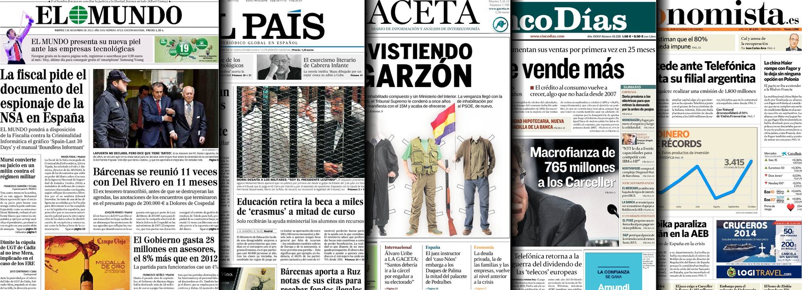 Portadas de los diarios El Mundo, El País, ABC, La Razón, La Vanguardia, La Gaceta, El Periódico, Cinco Días, El Economista, Expansión, Marca, As, Mundo Deportivo y Sport.