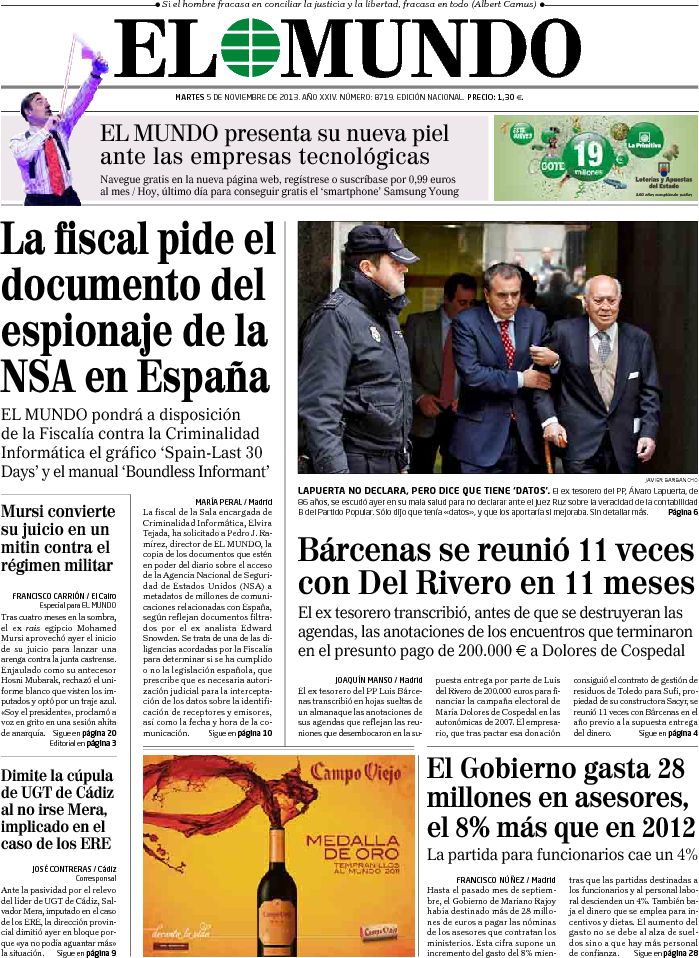 "La fiscal pide el documento del espionaje de la NSA en España"