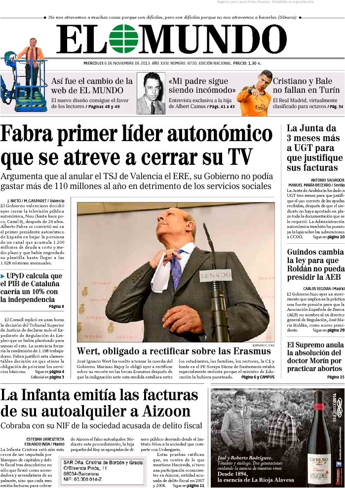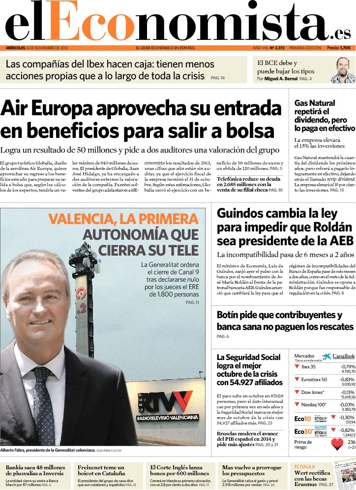 "Fabra primer líder autonómico que se atreve a cerrar su TV"