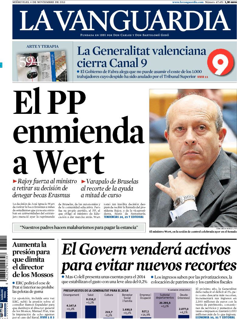 "El PP abandona a Wert ante el fiasco de las becas Erasmus"
