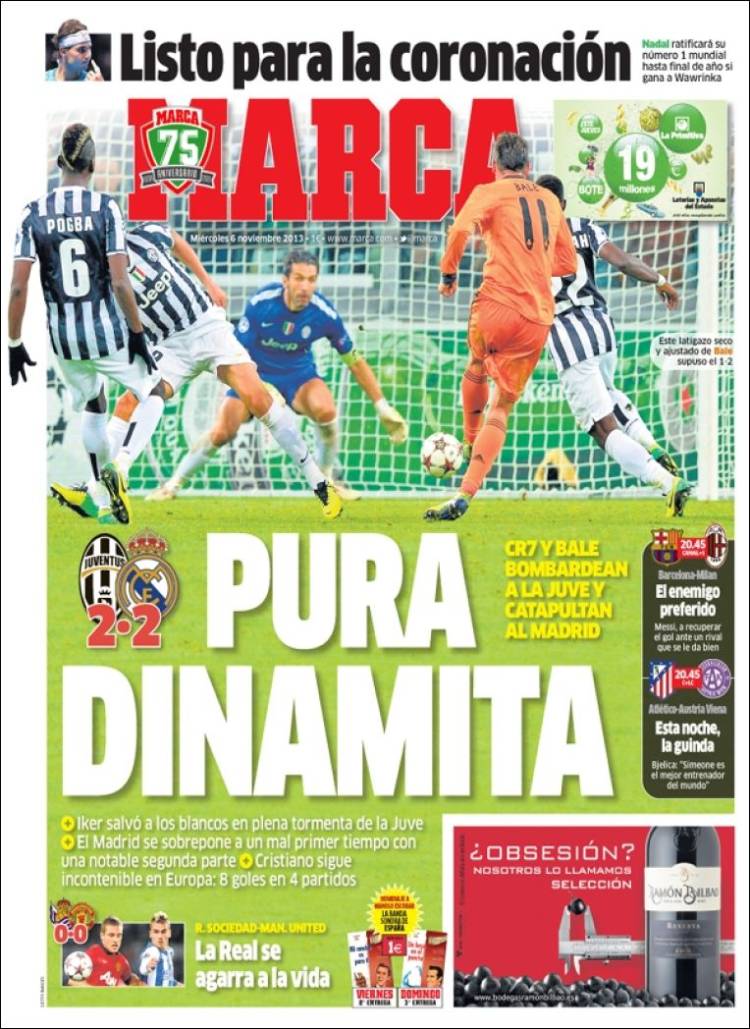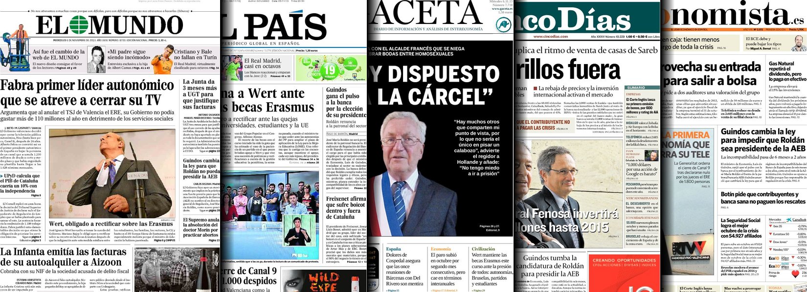 Portadas de los diarios El Mundo, El País, ABC, La Vanguardia, La Gaceta, El Periódico, Cinco Días, El Economista, Expansión, Marca, As, Mundo Deportivo y Sport.