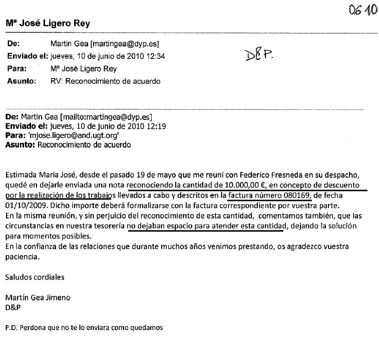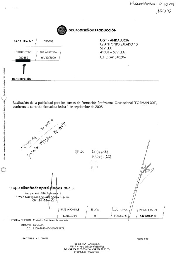 Pero en realidad el importe sirvió para el diseño y la organización del congreso ordinario de UGT Andalucía de 2009 como acredita el siguiente documento donde aparece el importe de la factura con toda claridad como importe del diseño del Congreso.
