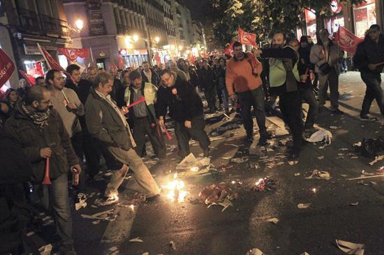 Además, con las primeras luces del día, un contenedor fue pasto de las llamas en la confluencia de las calles Goya y Alcalá y otro en la calle de Alonso Cano, cerca de la de José Abascal, en el distrito de Chamberí.