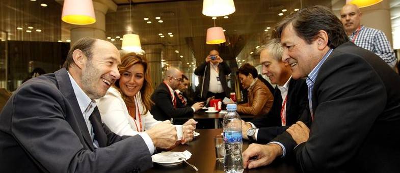 El líder del PSOE, Alfredo Pérez Rubalcaba, se ha reunido con los presidentes de Andalucía, Susana Díaz, y Asturias, Javier Fernández, y con el primer secretario del PSC, Pere Navarro, antes de la conferencia política y ante las especulaciones sobre un pacto entre barones para forzar un calendario de primarias.