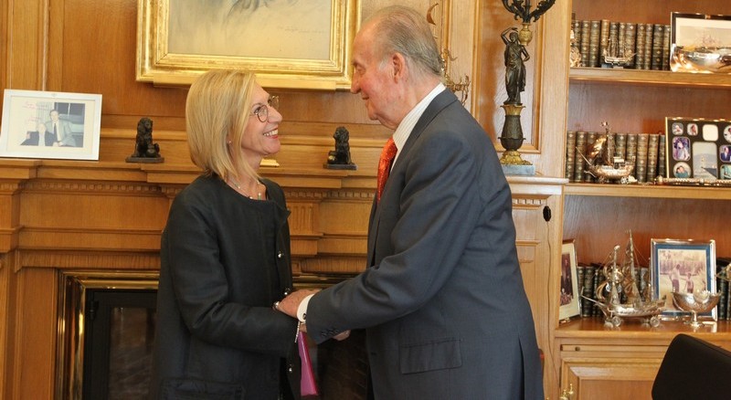 El monarca ha recibido en Zarzuela a la líder de UPyD con motivo de su reelección. Ha esperado de pie a su invitada en el despacho.
