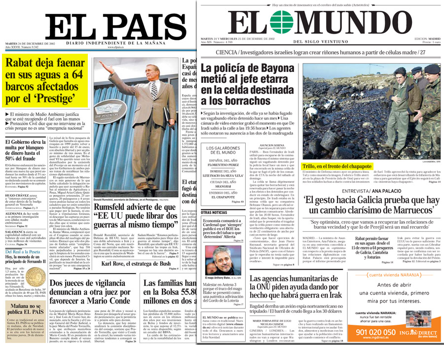 El Mundo no lleva el Prestige a su portada mientras que El País insiste con un nuevo futurible.