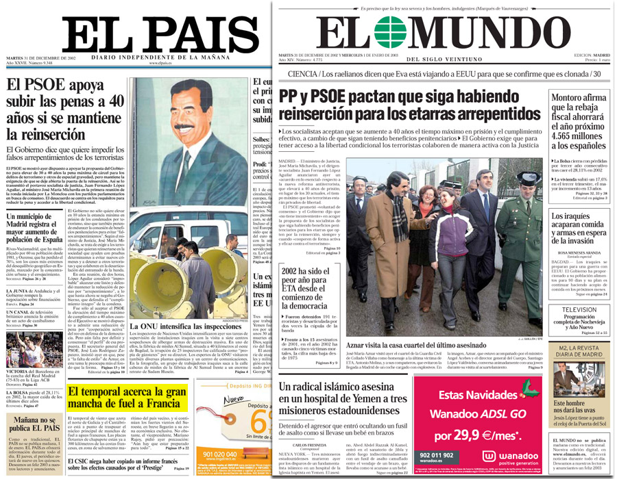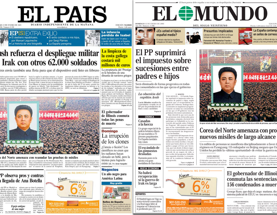 El País le dedica un espacio menor a pie de portada, El Mundo se limita a presentar su especial sobre el tema.