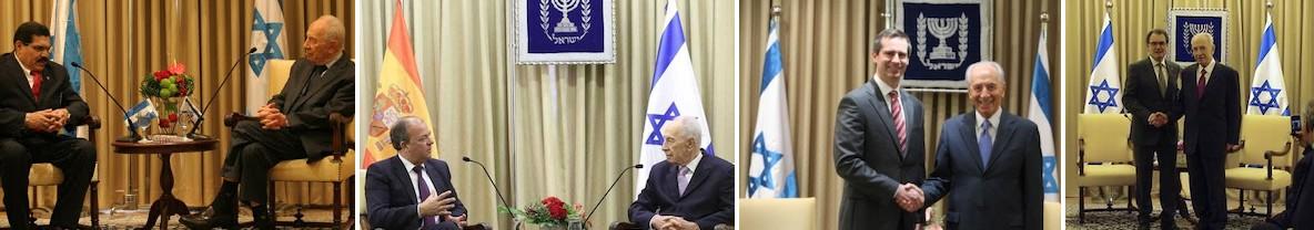 En caso de que se trate de otro tipo de líderes políticos, lo habitual es colocar dos banderas israelíes. Sucede así en otras visitas oficiales, como la del premier de Ontario, Dalton McGuinty, que visitó Israel en 2011. En su fotografía con Peres aparecen dos banderas de Israel. En cualquier caso, la diplomacia israelí también permite que en caso de estos líderes secundarios, si así lo desean, puede colocarse junto a la bandera de Israel, la enseña de su país de origen. Un ejemplo, además del de Monago, es el del presidente de la Asamblea Legislativa de la República de El Salvador, Ciro Cruz Zepeda, en julio de 2010. En las fotografías oficiales puede verse a ambos líderes posando junto a las banderas de Israel y El Salvador.